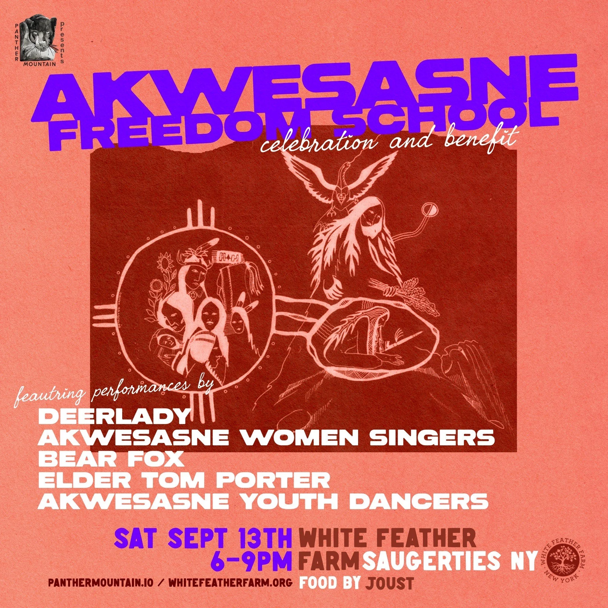 Organized by Panther Mountain, this benefit brings together artists, elders, and allies to celebrate and directly support the cultural survival of the Kanien’kehá:ka people. 100% of proceeds go to the Akwesasne Freedom School’s operating costs.