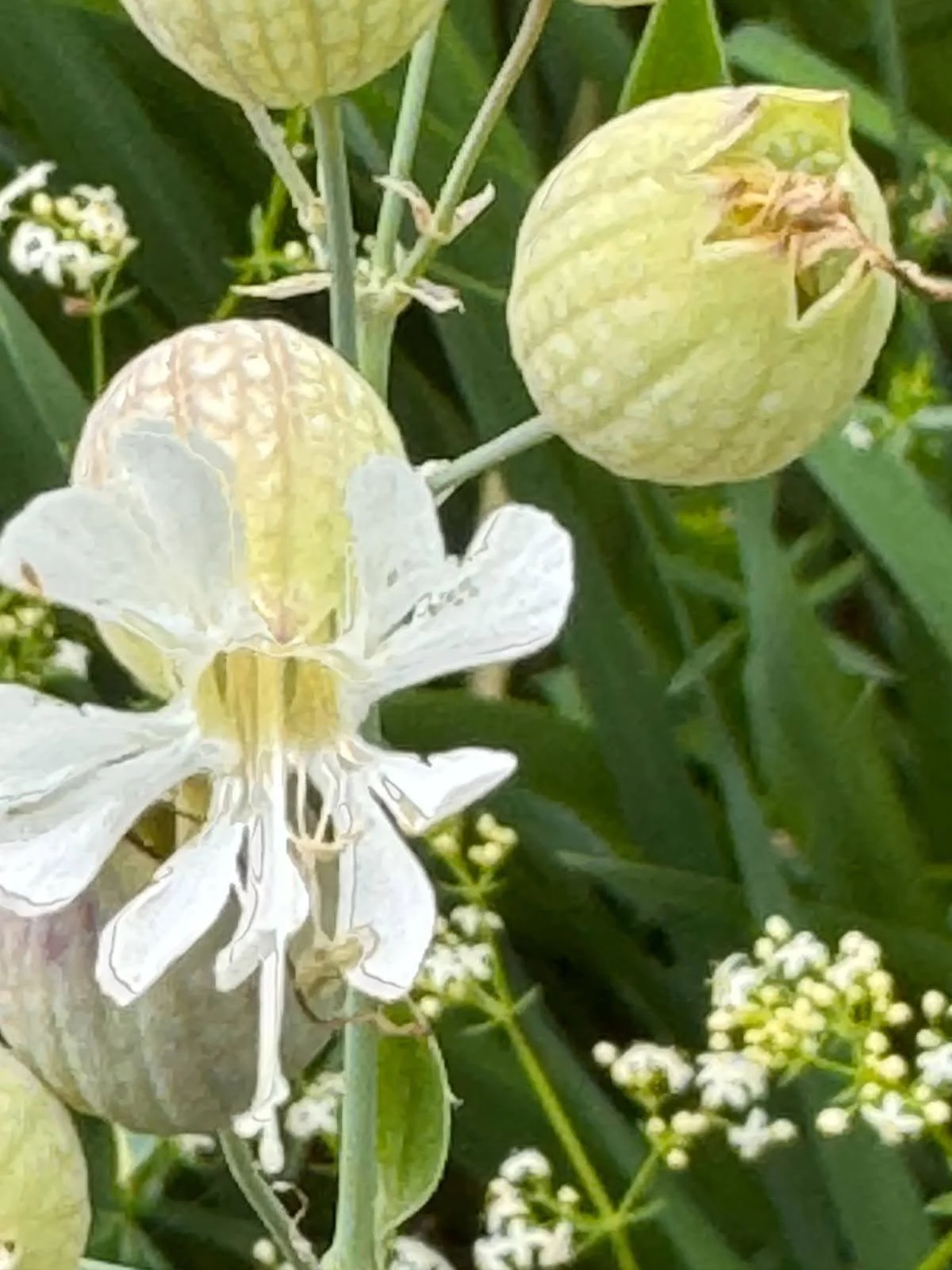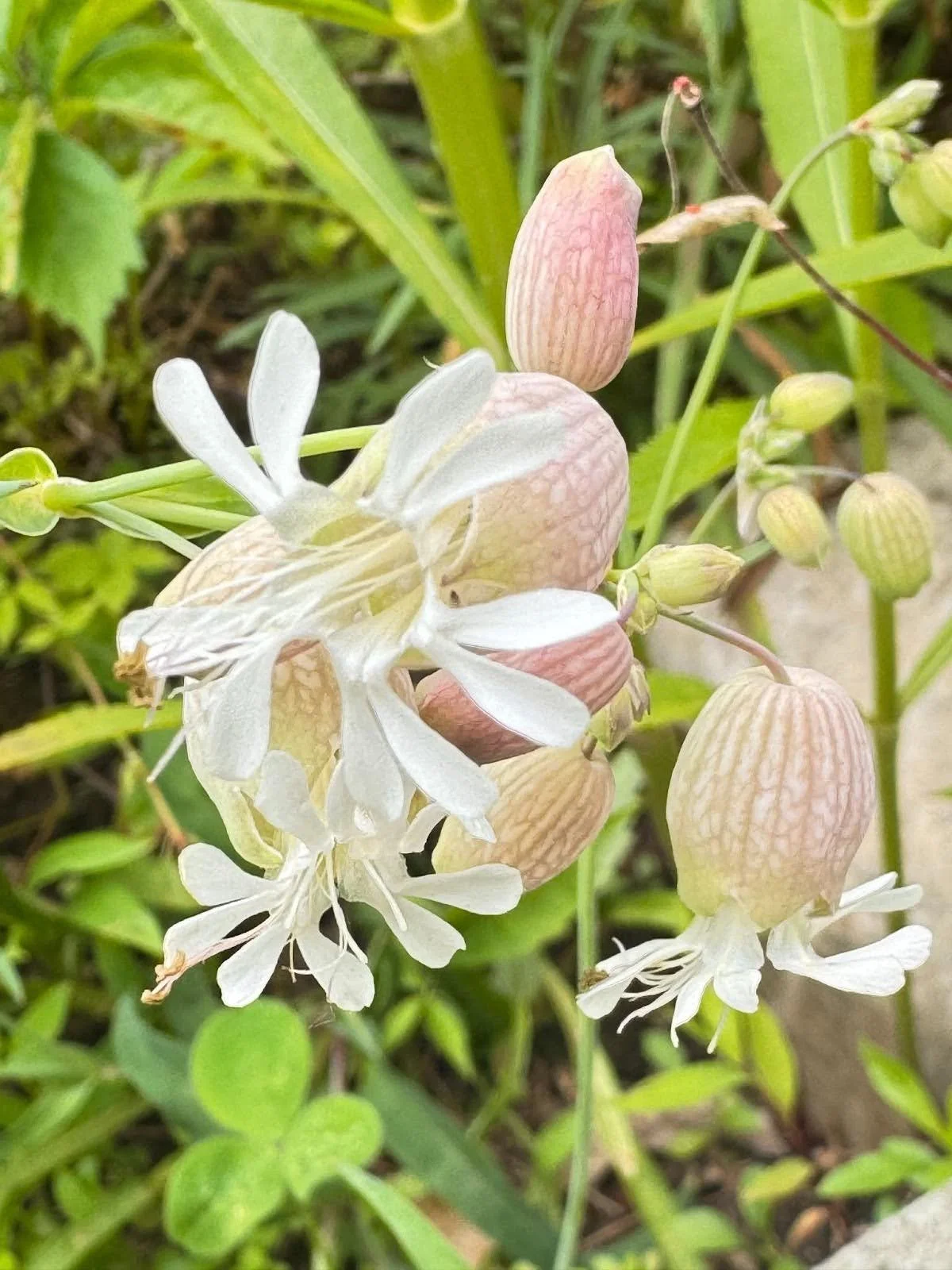 Next, Silene vulgaris, otherwise known as catchfly or bladder campion, is native to southern Europe, where it was used as a plant to feed herds of domestic animals way back when. The young, raw leaves have many culinary uses throughout the Mediterranean region. It is also native to Northern Africa and parts of Asia. It has found a home in the States, probably arriving on a ship in Oregon in the 1900s.