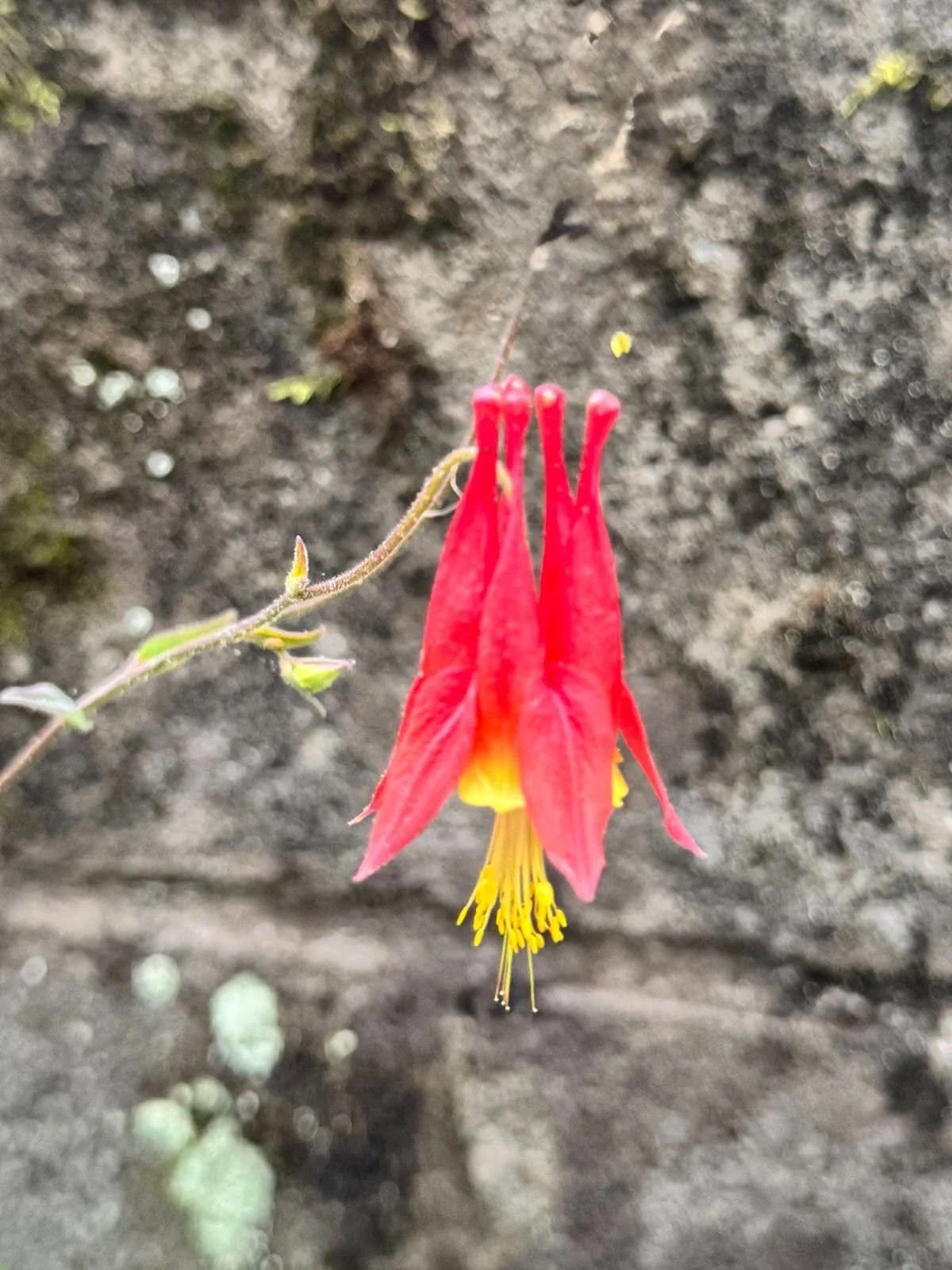 I read somewhere that it has purple dots on the underside of the petal, but I didn't see these when I looked at it under the microscope. I did notice some striking yellow veins embedded into the underside of the intense scarlet petals. Also hard to see without a magnifying glass– it has a square stem.