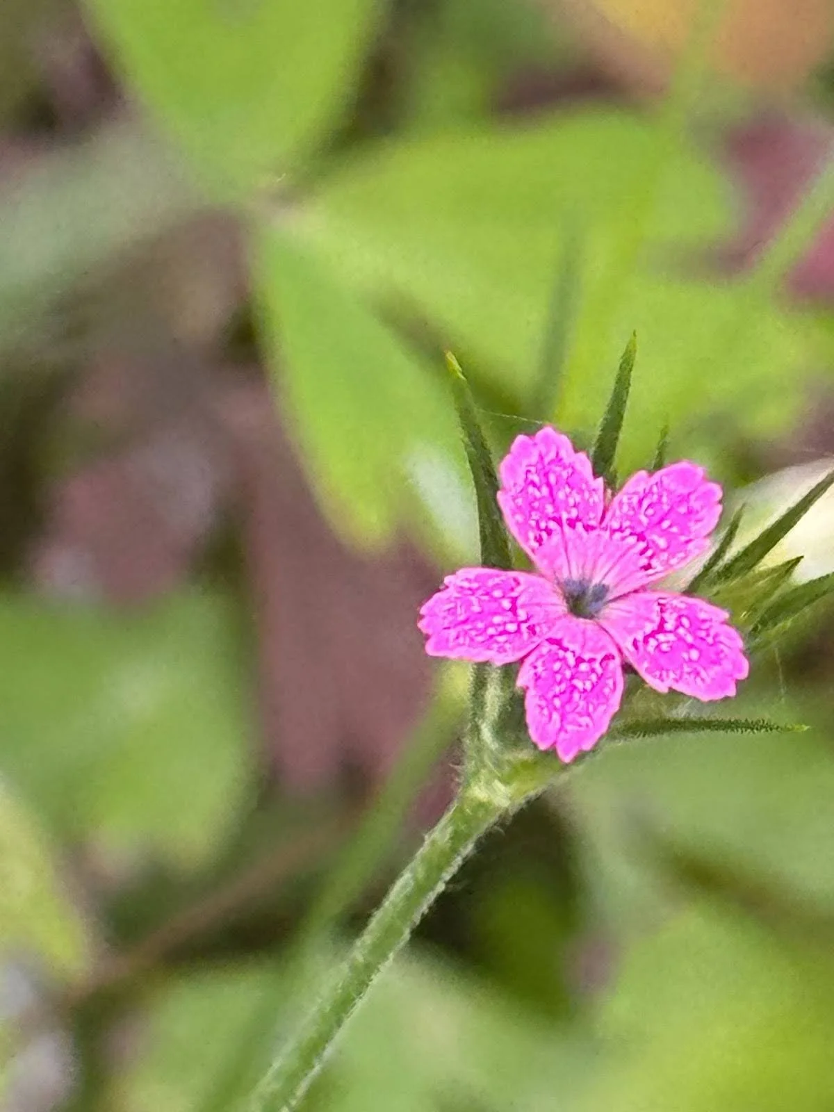 Dianthus armeria, commonly known as Deptford pink, was first recorded in the 1600s in Deptford, not surprisingly, east of London, and named by apothecary and notable plant enthusiast, Thomas Johnson. Johnson may have misidentified the plant as its cousin, the maiden pink, as it is now believed that Deptford pink was not present in that area at that time; however, the Deptford name stuck. It is native to most of Europe, Scandinavia, and some sources suggest that it is also native to Iran and Iraq.