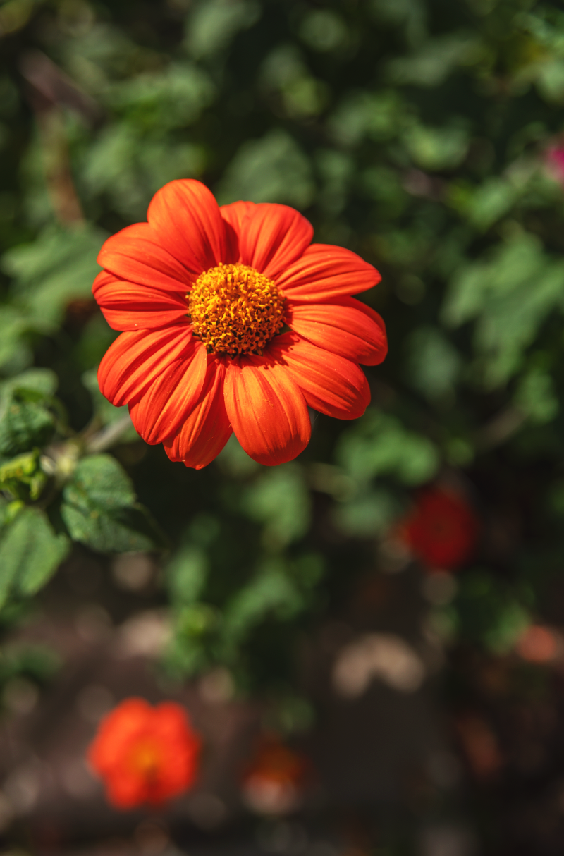 Next, Torch Tithonia, also known as Mexican sunflowers — those handsome monarch magnets! They grow eight feet high, with many-branched stems, and bloom after deep, orange, spectacular bloom - until the first frost comes and collapses the water-dense vacuoles within their cells, making their once husky stems bend forward, as if bowing to the deities of the coming coldness.